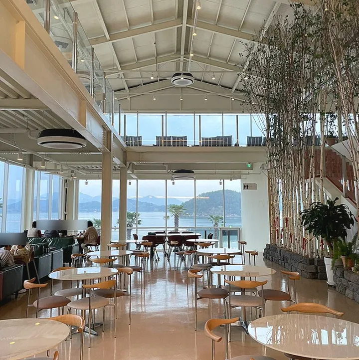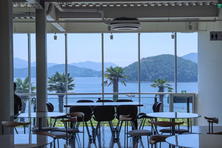 전망이 탁월해요. 7층에서 360도 회전하는 파노라마 뷰로 통영과 거제 바다를 한눈에 볼 수 있어요.