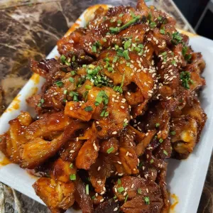 불향 나는 매콤한 양념이 특징이라 중독성 있게 당겨요.