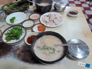 국밥 국물이 담백하고 구수해요.