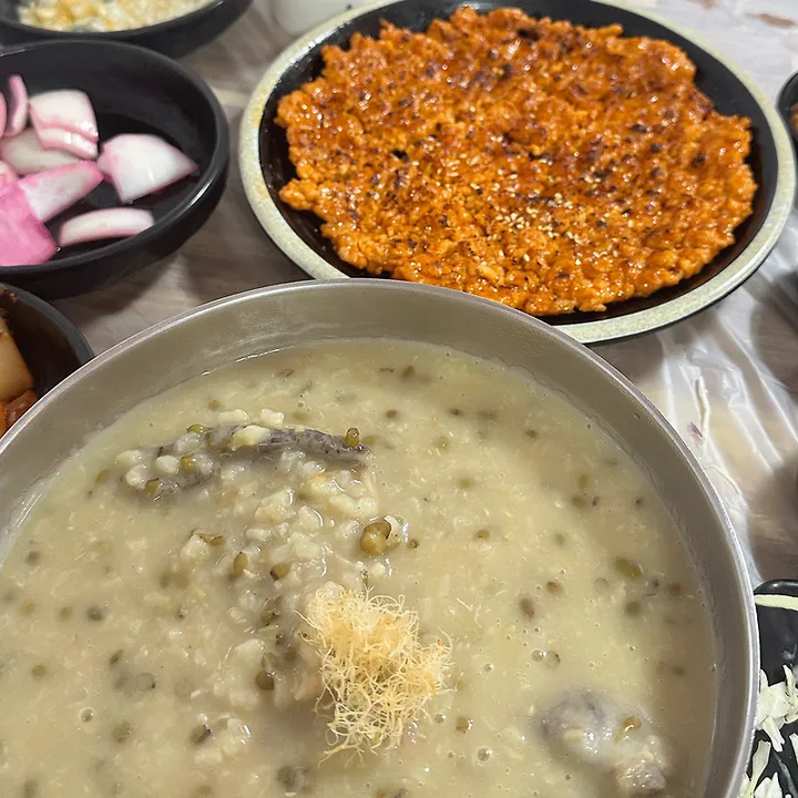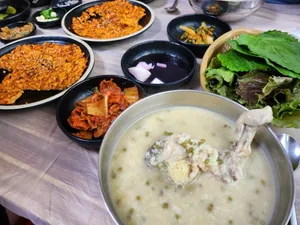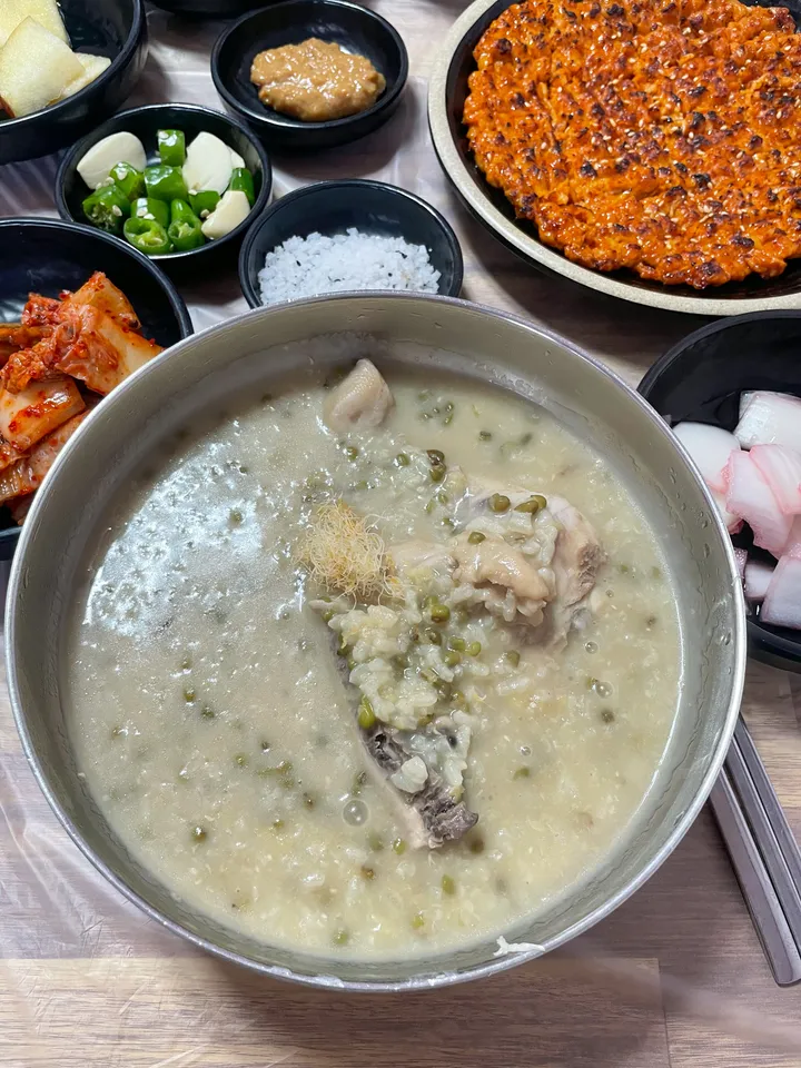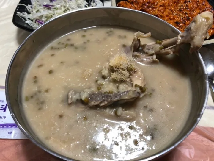 - 닭백숙이 담백하고 녹두죽이 고소해서 건강하게 먹기 좋아요