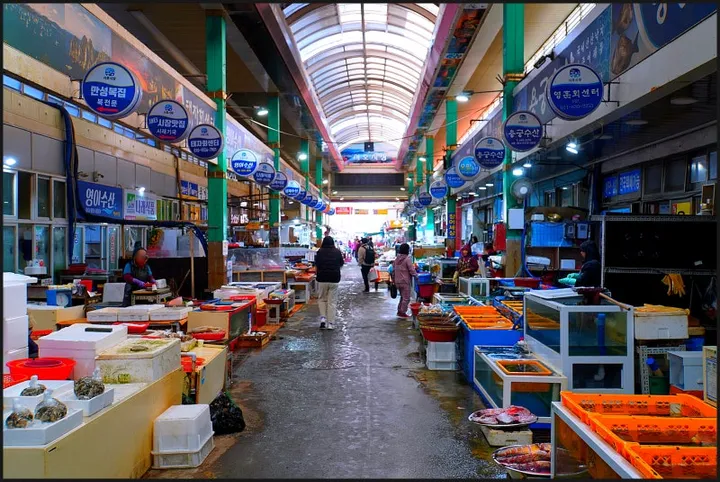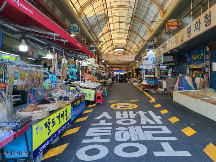 서호시장은 통영의 강구안항 근처에 위치한 전통 시장으로, 통영 사람들의 삶이 고스란히 녹아 있는 활기 넘치는 곳입니다. 통영의 신선한 해산물과 건어물, 그리고 싱싱한 채소들을 저렴한 가격에 구매할 수 있습니다. 이곳의 가장 큰 매력은 이른 아침부터 문을 여는 '시락국' 골목입니다. 뜨끈하고 구수한 시락국 한 그릇으로 든든하게 아침을 시작하는 것은 통영 여행의 필수 코스라고 할 수 있죠. 그 외에도 충무김밥, 꿀빵 등 통영의 명물들을 맛볼 수 있는 곳들이 많아 먹는 재미가 쏠쏠합니다.