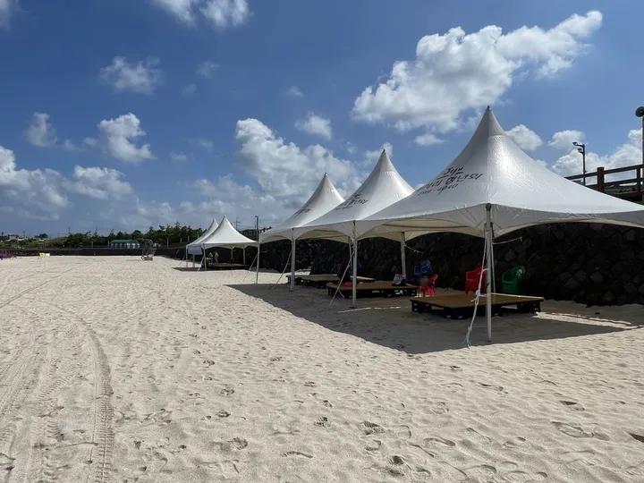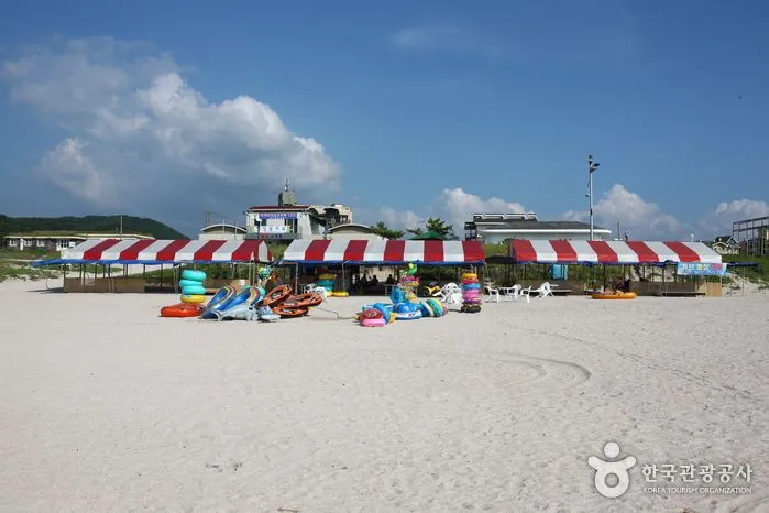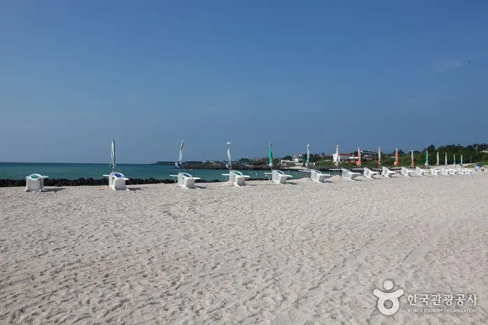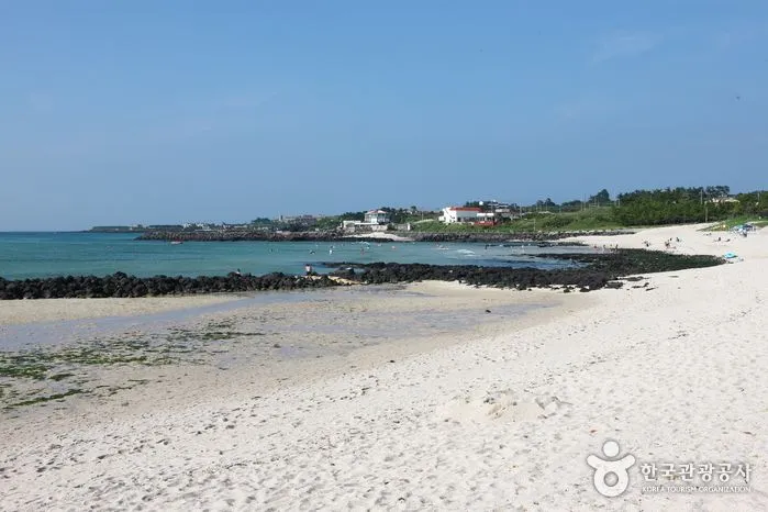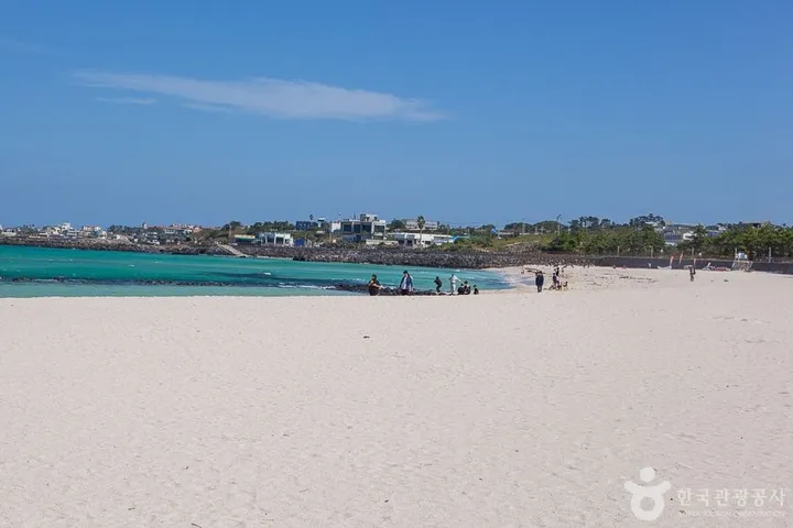 곽지해수욕장은 길이 350m, 너비 70m의 백사장과 평균수심 1.5m, 경사도 5~8도의 좋은 조건을 갖춘 해수욕장이다. 이러한 조건 때문에 청소년 수련장이 설치되고 단체 피서객이 많이 찾는다. 곽지리는 선사시대의 패총이 발견되었을 정도로 유서 깊은 마을이다. 지금의 곽지해수욕장은 옛날에 마을이 들어서 있던 곳이었으나, 어느 날 갑자기 모래에 파묻혔다는 전설이 전해온다. [출처: 한국관광공사]